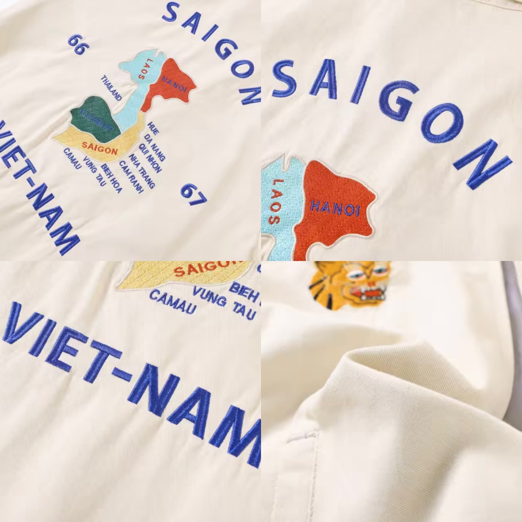 60年代の実物のイメージを踏襲し手振り風な刺繍が施してあり刺繍柄はキャッチーなヴィンテージ風の虎刺繍とポピュラーな地図柄刺繍の2デザインを全刺繍で落とし込んでいます!