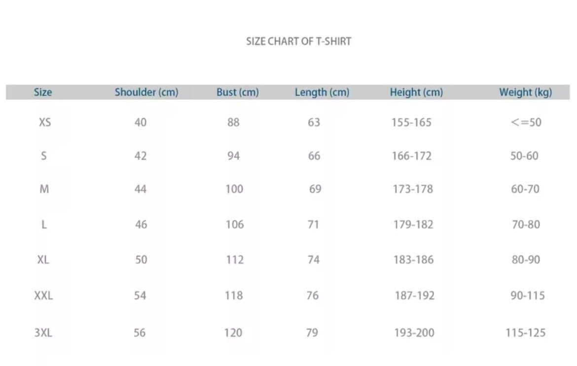 サイズ:S/M/L/XL/XXL/3XL