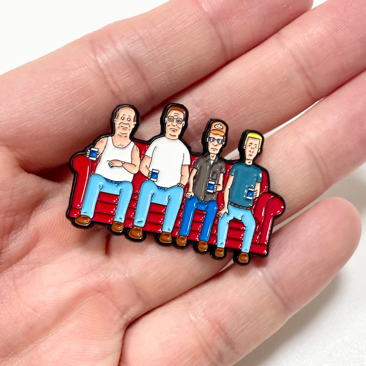 アメリカの人気アニメ『キング・オブ・ザ・ヒル(King of the Hill)』のメインキャラクターが勢揃いしたピンバッジです。