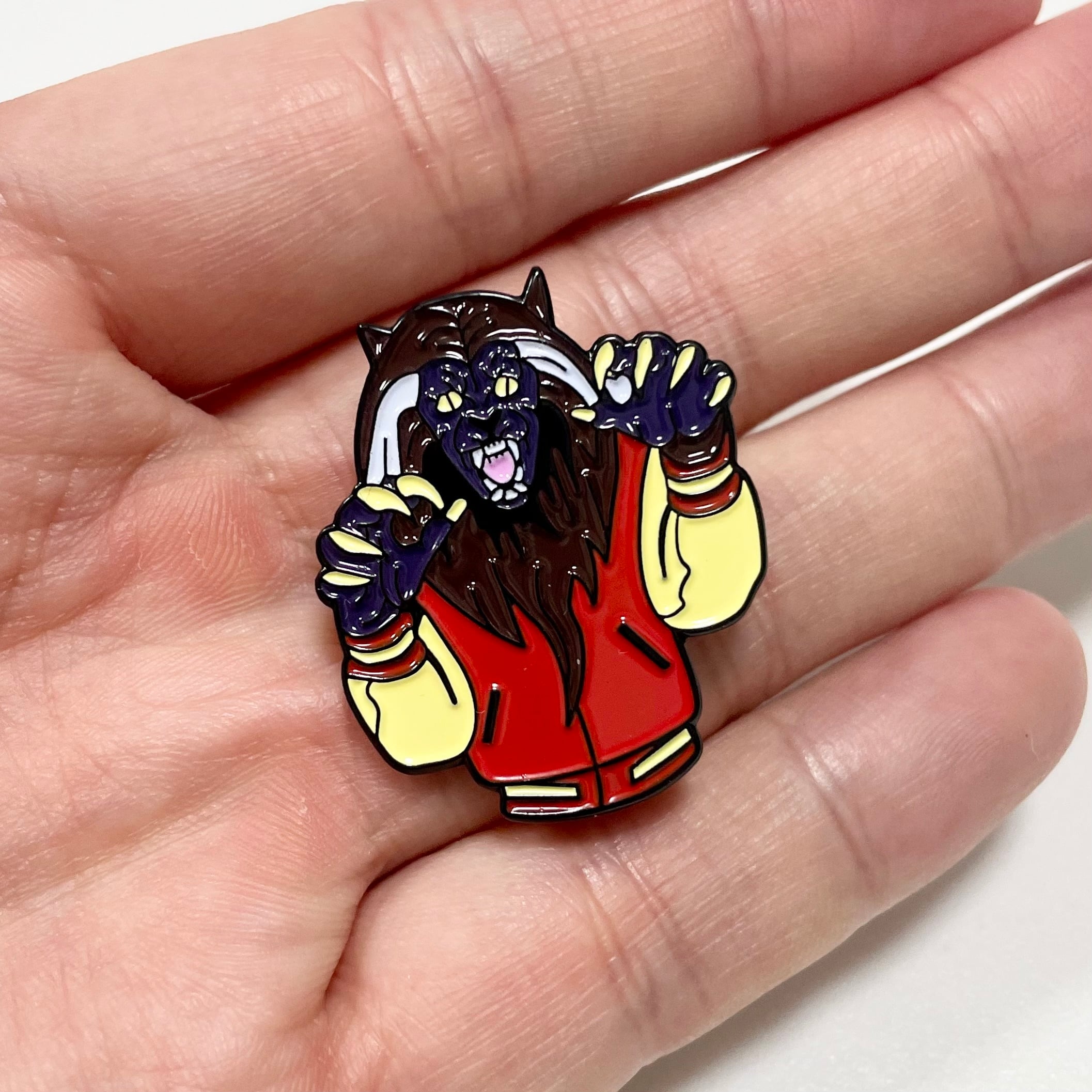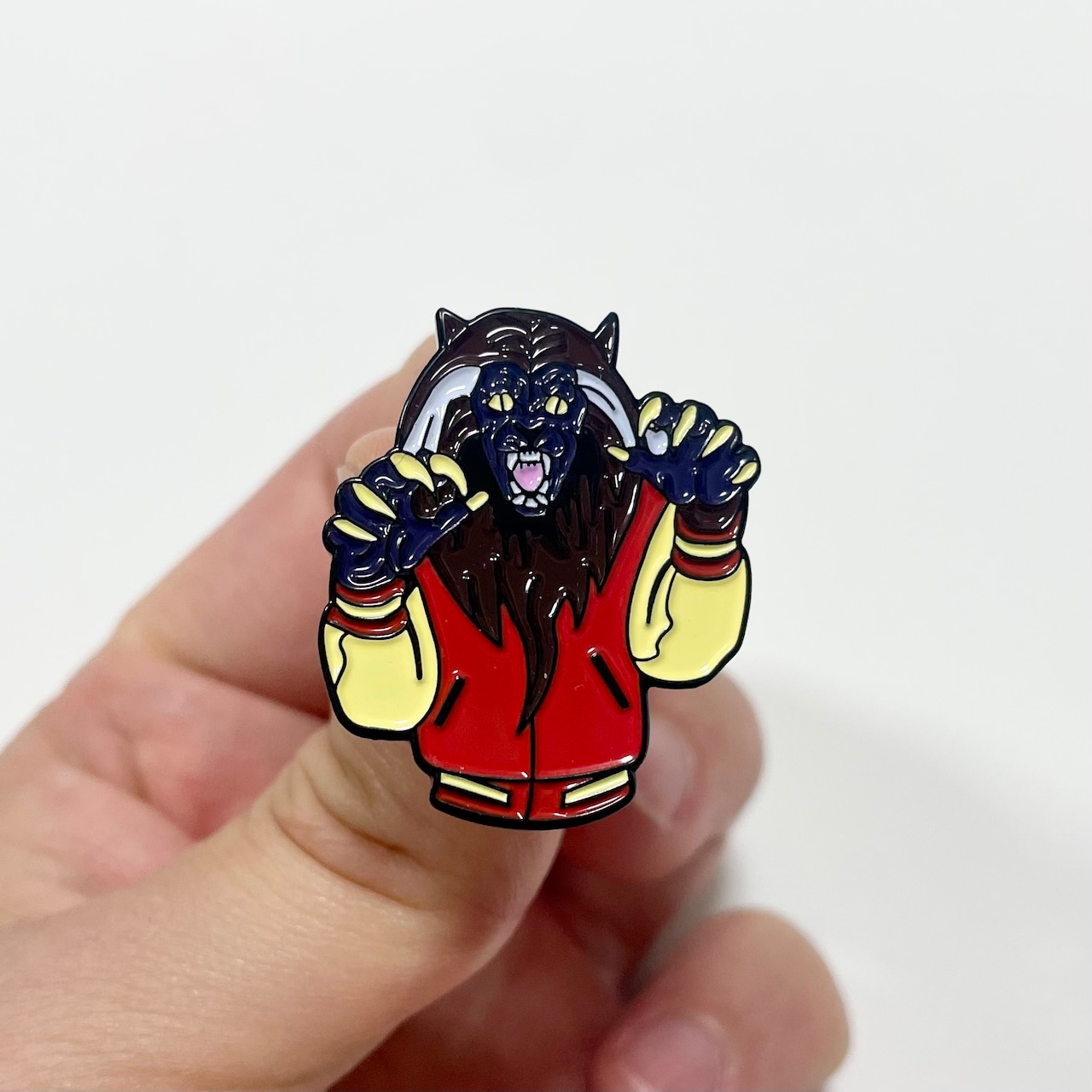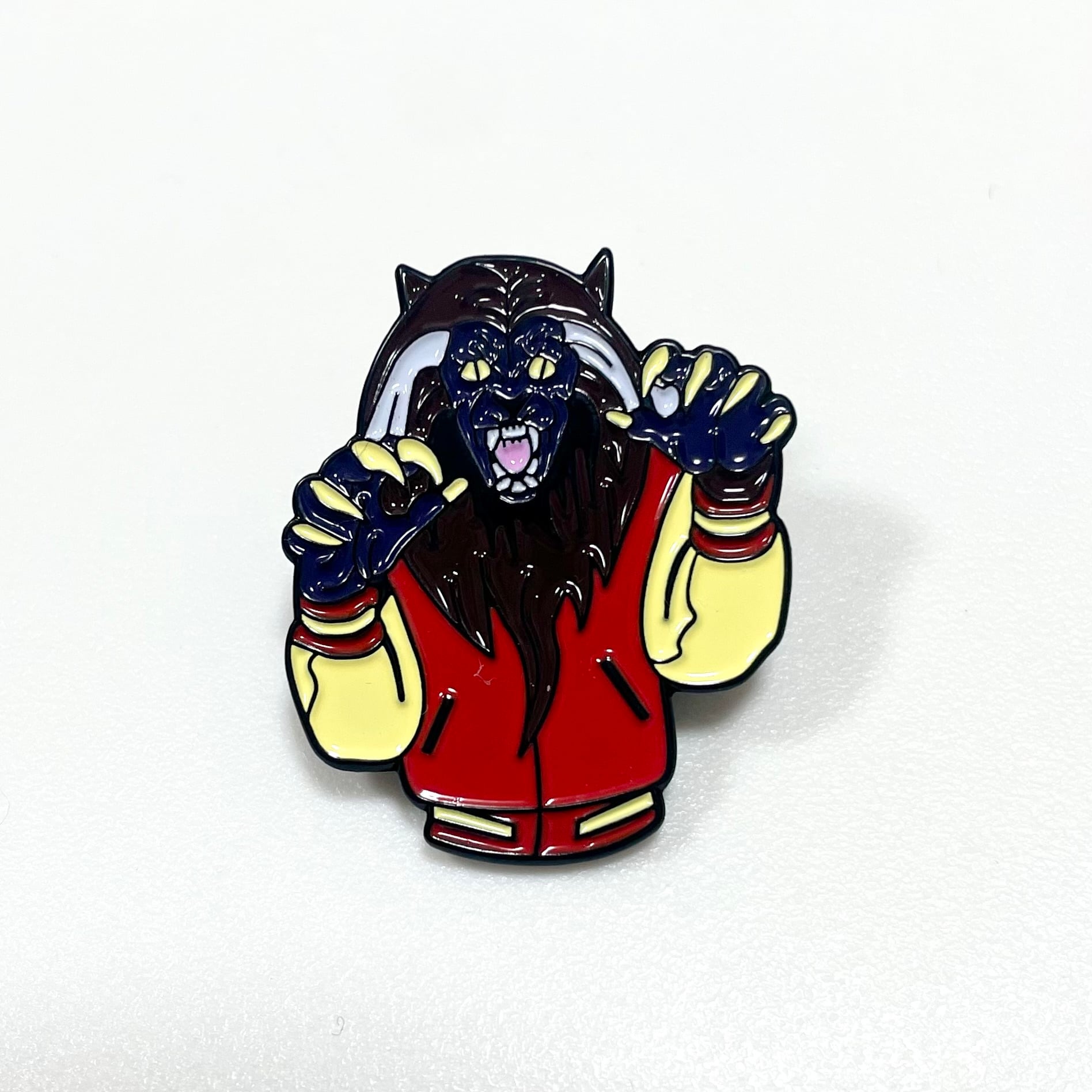 Michael JacksonのThrillerに登場するワーウルフ(狼男)をモチーフにしたピンバッジです。