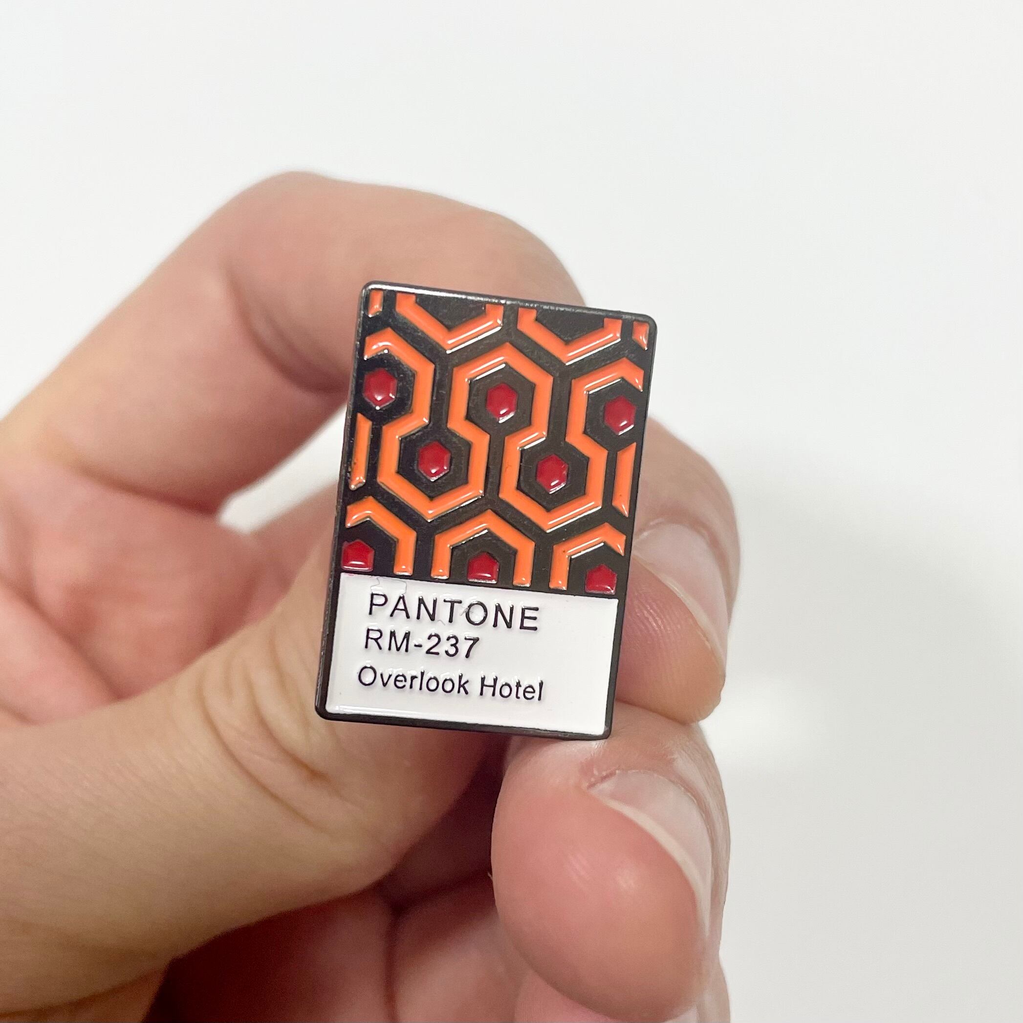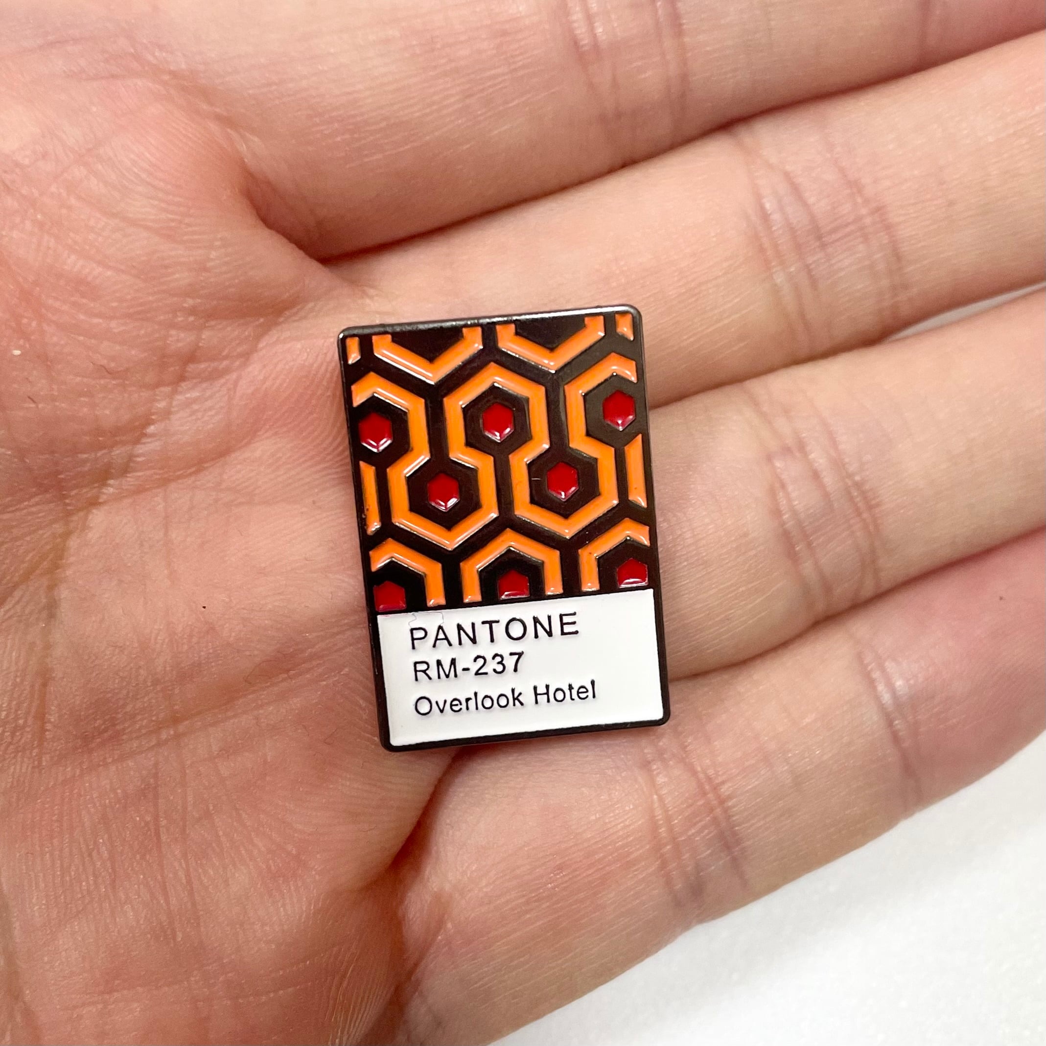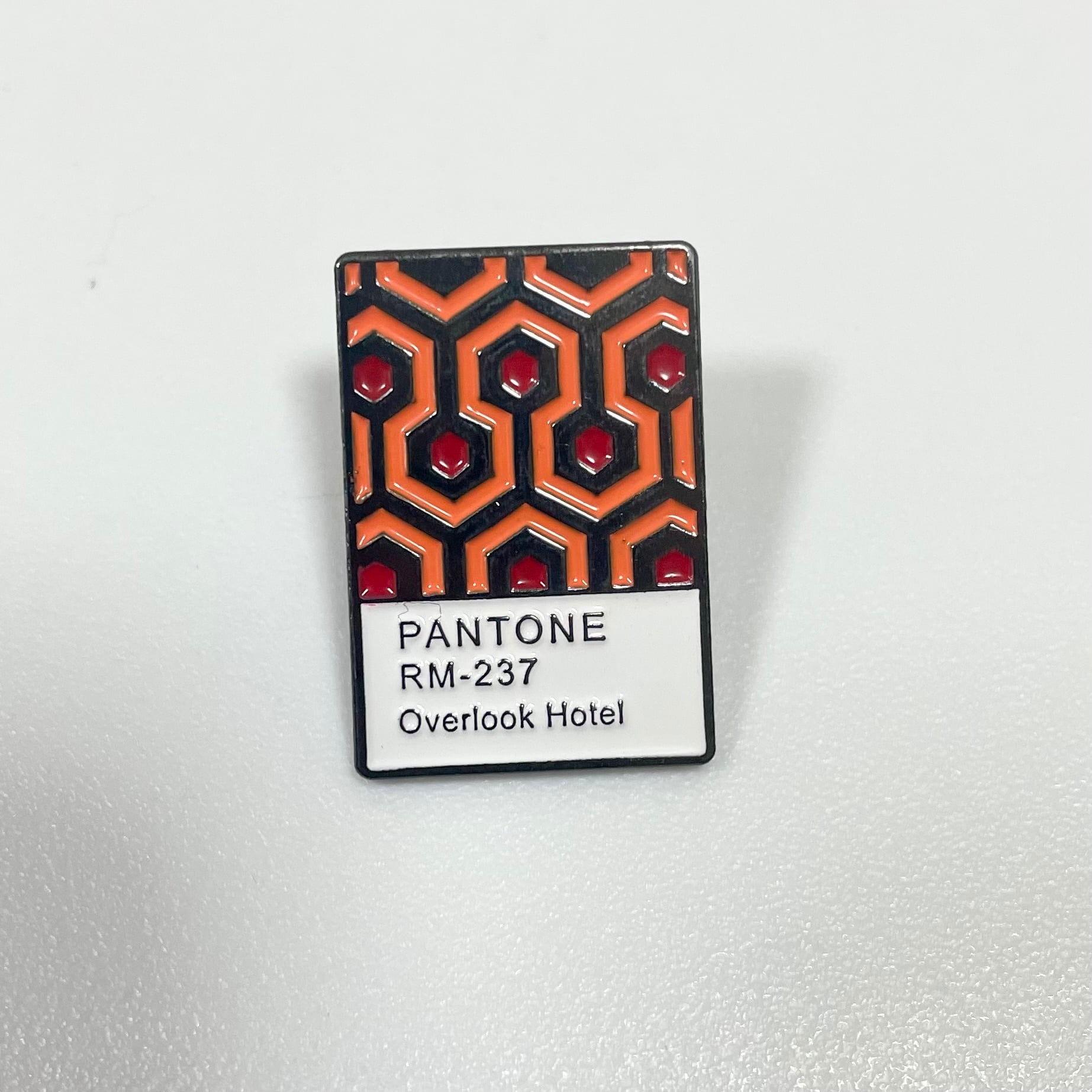 映画『 THE SHINING 』からオーバールックホテルの特徴的なカーペットがパントーン(色見本帳)として押し込まれたデザインピンバッジです。